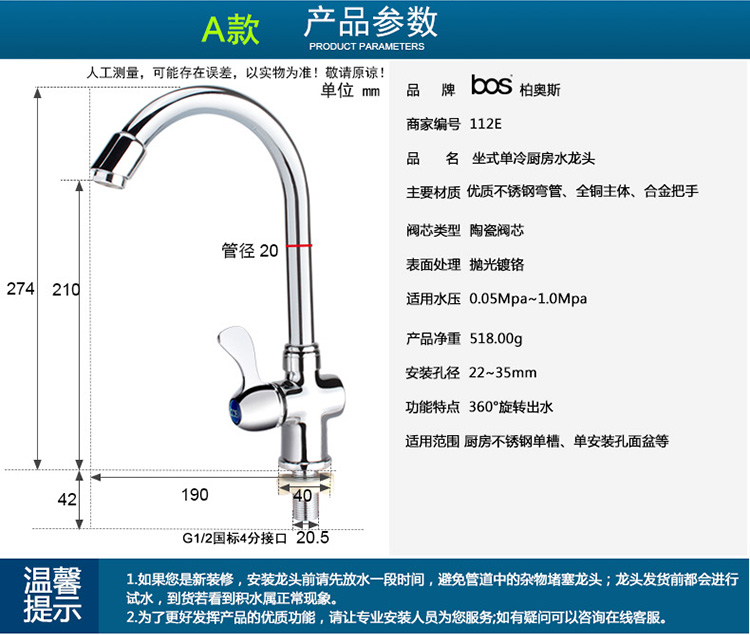 單冷立式廚房龍頭