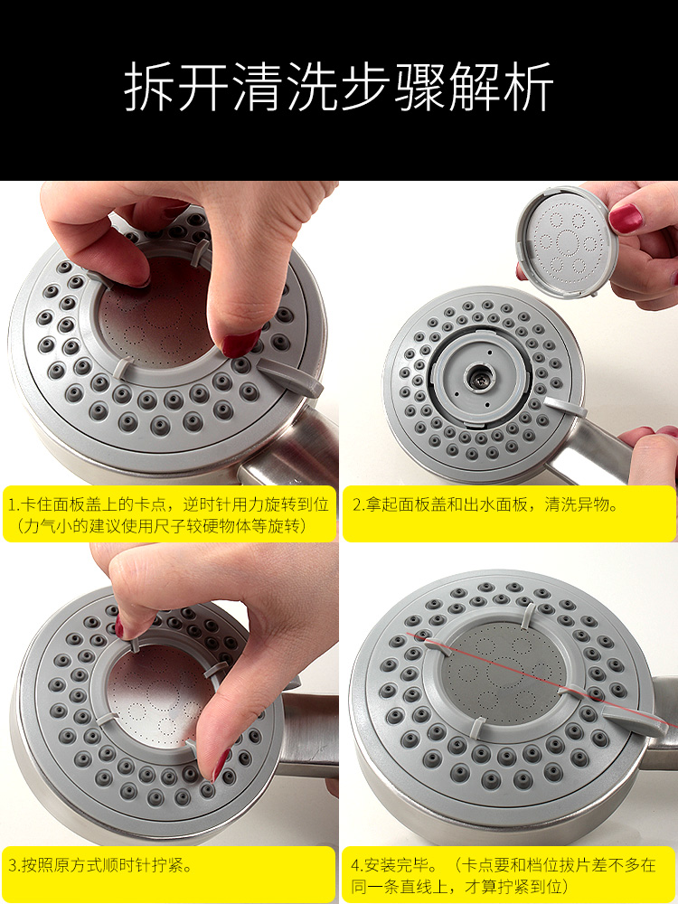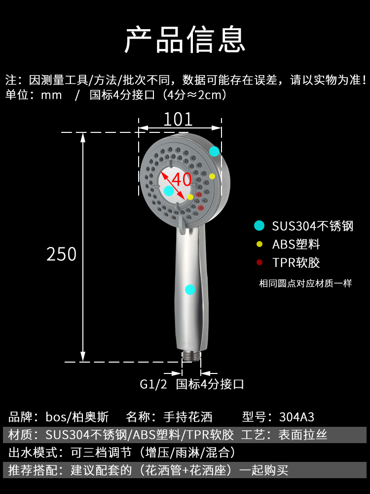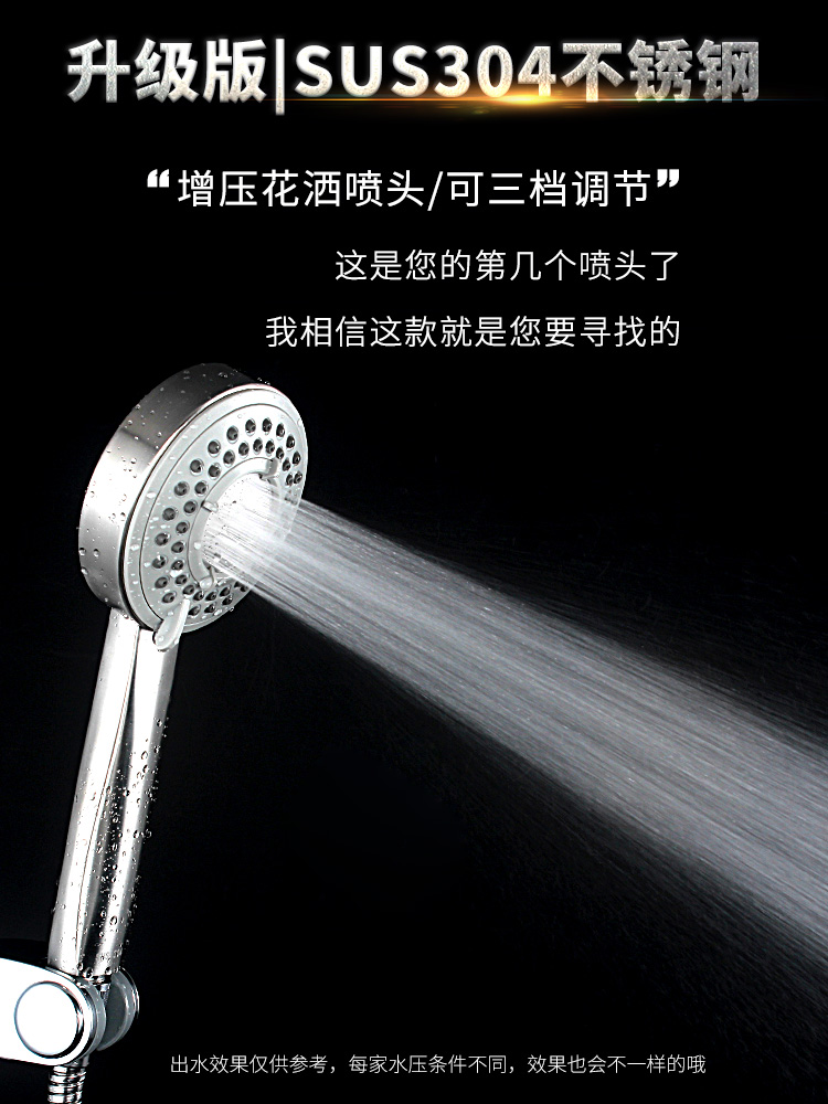 三檔調(diào)節(jié)/SUS304不銹鋼增壓花灑/可拆洗